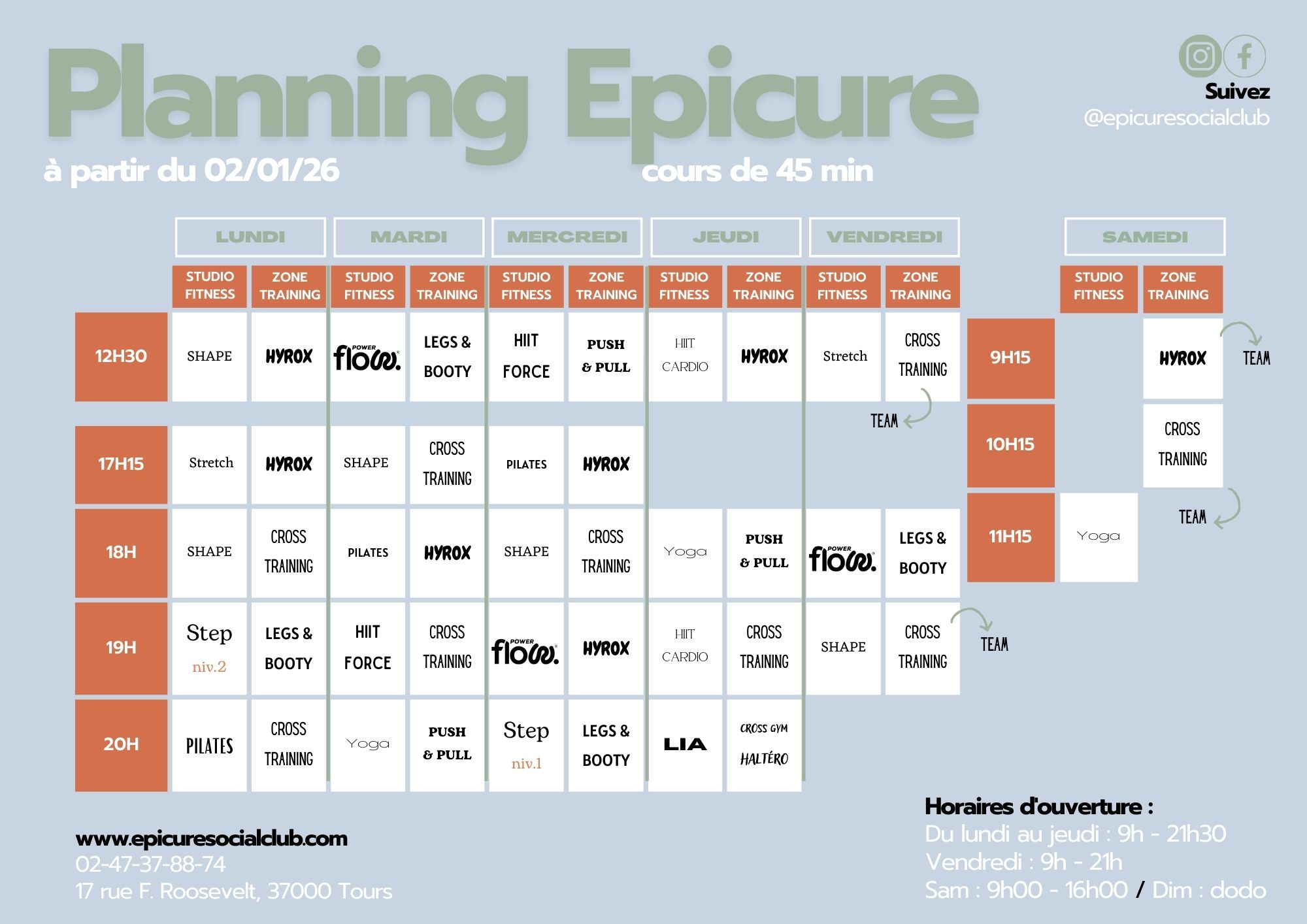 Une approche nouvelle du fitness, où le plaisir est au cœur de chaque entraînement. Epicure Social Club vous invite à découvrir des cours modernes, créatifs et stimulants dans des espaces dédiés : cardio, musculation, zone training et studio fitness lumineux. Avec 50 cours collectifs variés chaque semaine, nos coachs passionnés vous guident dans votre parcours, pour que chaque séance soit une source de motivation et de bien-être.